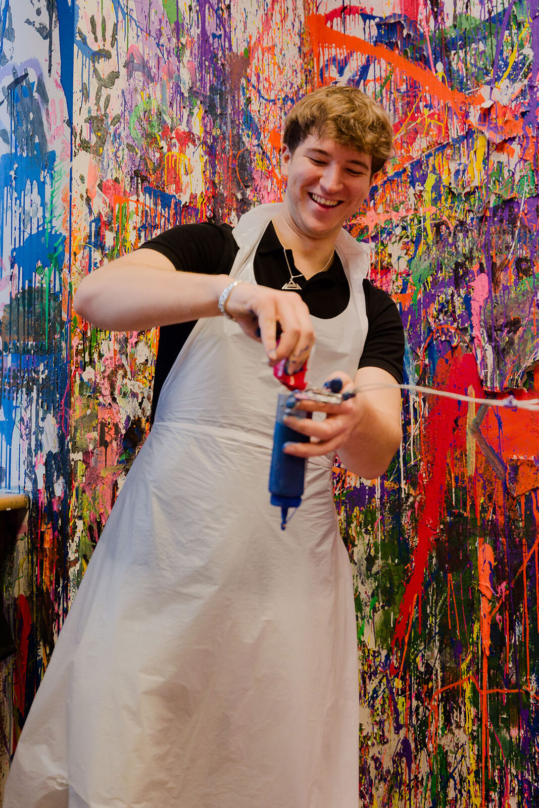 Voucher obejmuje jednorazowe uczestnictwo w sesji malarskiej w stylu action painting w wybranej technice i sesji (klasycznej lub fluo).